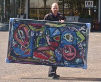 Een unieke techniek gebruikt Erik om zijn schilderijen een Street-art achtige stijl te geven.
