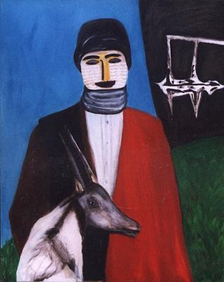 De "verfremdung" van de mens van de natuur interessiert me en ik zag dat gesymbolizeerd in als menselijk onherkenbare gezicht van de man, terwijl het dier zijn gezicht behoud . De natuur blijft zichzelf trouw. De mens niet.