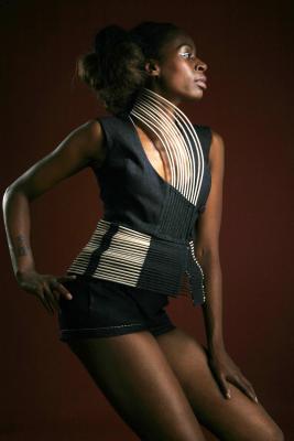 Bamboo/cotton denim with reed insertions. Photography: Ron Scharis / Model: Janine Holder from anti-models.