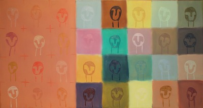 In mijn serie koppen, zie je geen traditionele portretten, maar probeer ik de complexiteit van de mens te pakken doormiddel van vorm, verf en kleur.