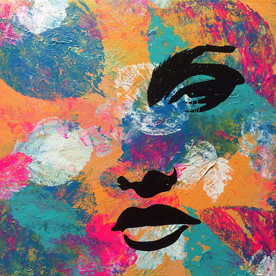 'Nirvana serie, NIRVANA 3' door JIM & ANGEL, een Nederlands kunstenaarsduo dat samenwerkt, geïnspireerd door Pop Art, Street Art en natuur. Over de gelaagde natuurvormen (ANGEL), zijn grafische impressies aangebracht van mensen, objecten en iconen (JIM). Acryl op doek. Met Certificaat van Echtheid.